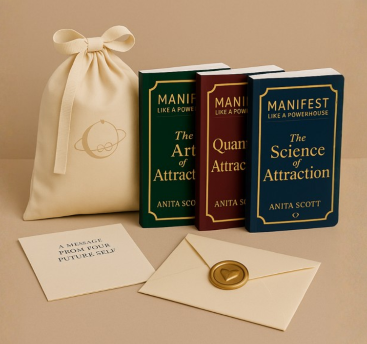 Inside this set, you get the full Manifest Like a Powerhouse trilogy paired with a guided ritual and a gold-sealed letter designed to activate your next level. Clean. Powerful. Transformational.